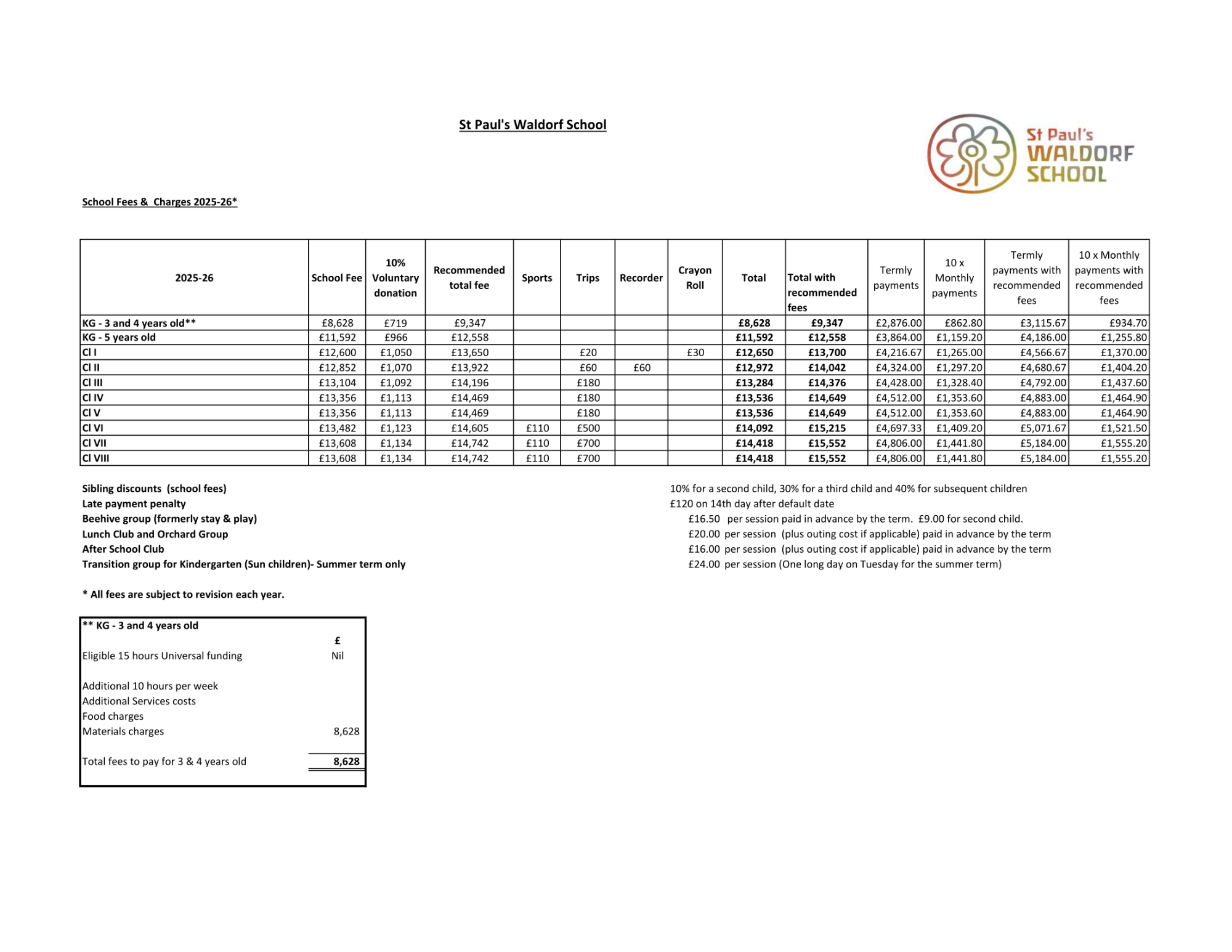 NB. Please ensure that all payments carry the child’s name as reference, in order that they can be allocated correctly. Please also confirm by e-mail to finance@stpaulswaldorfschool.org, whenever a payment has been sent in respect of deposits, or when a standing order has been set up.